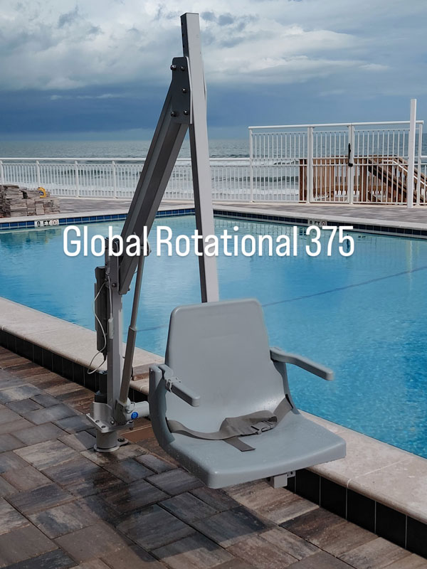 Residential Pool Lifts: The Global L-350R2 ADA-Compliant pool lift is a trusted choice for both commercial & residential pool lift settings, offering a dependable and compact design that prioritizes safety and accessibility. its quick, one-day installation ensures it seamlessly fits into your residence.